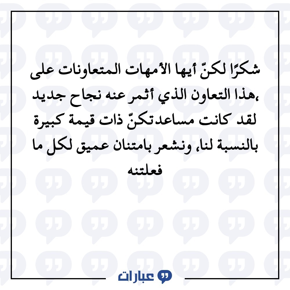 - كل الشكر للأمهات المتعاونات، تعاونكن معنا يجعل العملية التعليمية أكثر نجاحًا وأبناءنا أكثر تميزًا.