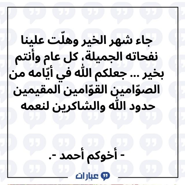 - جاء شهر الخير، وهلّت علينا نفحاته الجميلة، كل عام وأنتم بخير… جعلكم الله في أيّامه من الصوّامين القوّامين المقيمين حدود الله والشاكرين لنعمه – أخوكم أحمد -.