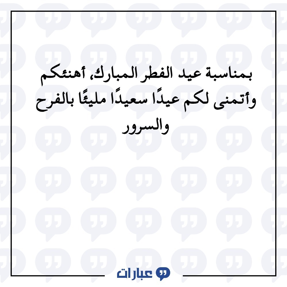 - بمناسبة عيد الفطر المبارك، أبعث إليكم أجمل التهاني وأطيب الأمنيات، راجيًا من الله أن يملأ قلوبكم بالسعادة، وأيامكم بالخير والبركات.