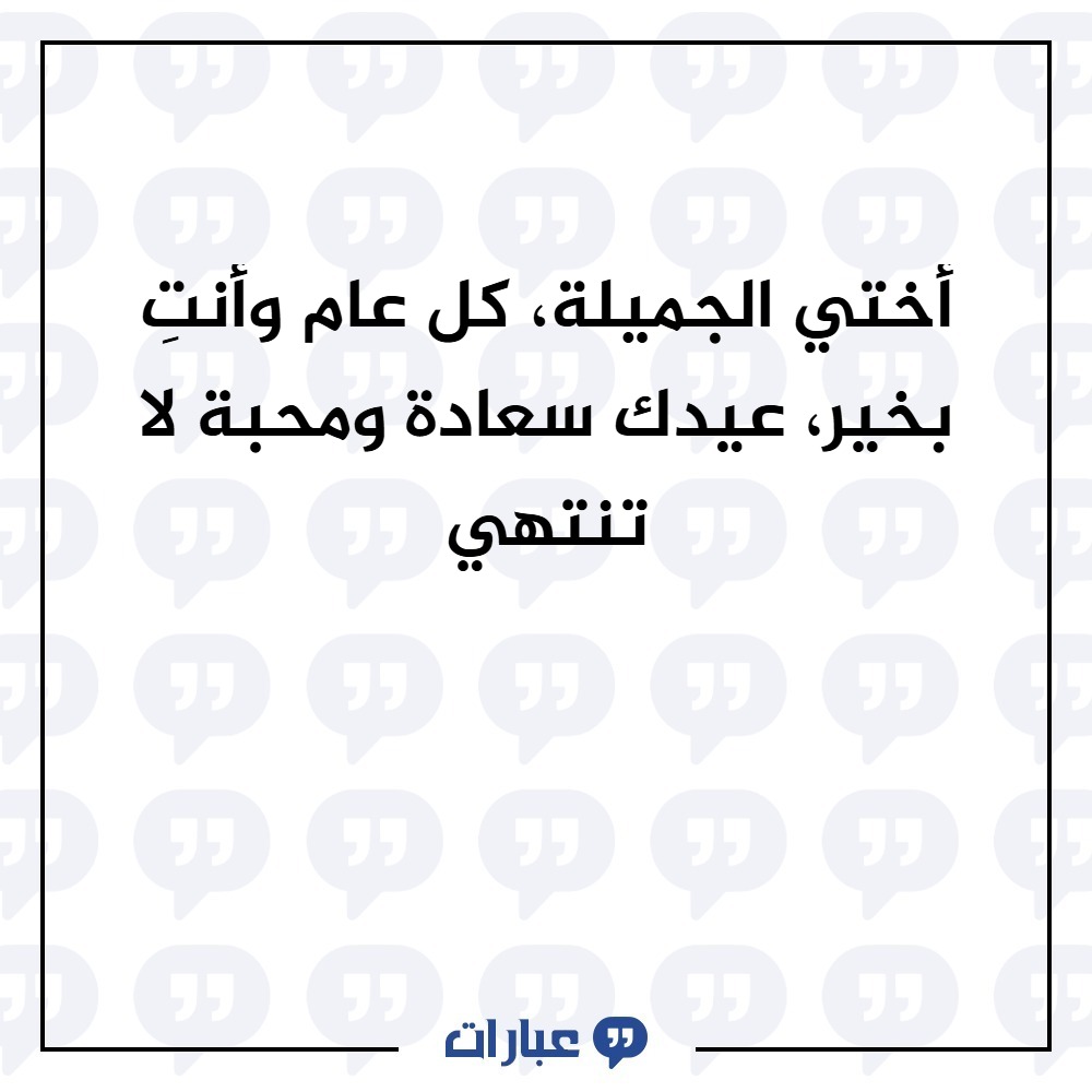 - أختي العزيزة في هذا العيد المبارك، أدعو الله أن يحفظك، وأن يحقق لك كل ما تتمنى. كل عام وأنت بخير.