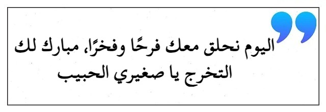 - مبروك لك تخرجك، يا صغيري الحبيب، نرى فيك بريق المستقبل ونجاح الأيام القادمة.