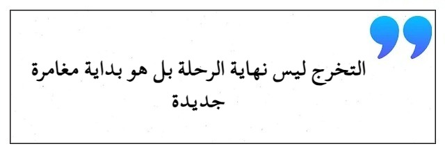 - رغم فرحتي بتخرجي، كانت سنوات الدراسة مليئة بالتحديات واللحظات الجميلة، أودع اليوم هذه المرحلة وأنا أشعر بالفخر لكل ما تعلمته ولكل الصداقات التي كونتها، سأتذكر دائمًا تلك اللحظات بحب وامتنان.
